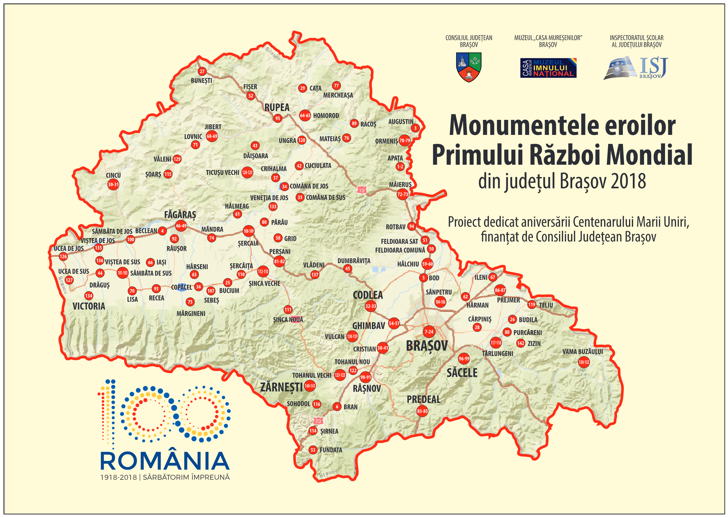 Marea Unire nu ar fi fost posibilă fără eroismul și jertfa ostașilor români în memoria cărora au fost ridicate monumente în foarte multe localități din țară. În cadrul acestui proiect cultural s-a editat o hartă a monumentelor eroilor Primului Război Mondial din județul Brașov cu un tiraj de 8000 de exemplare și s-a realizat o expoziție foto-documentară itinerată în școli din municipiul și județul Brașov.