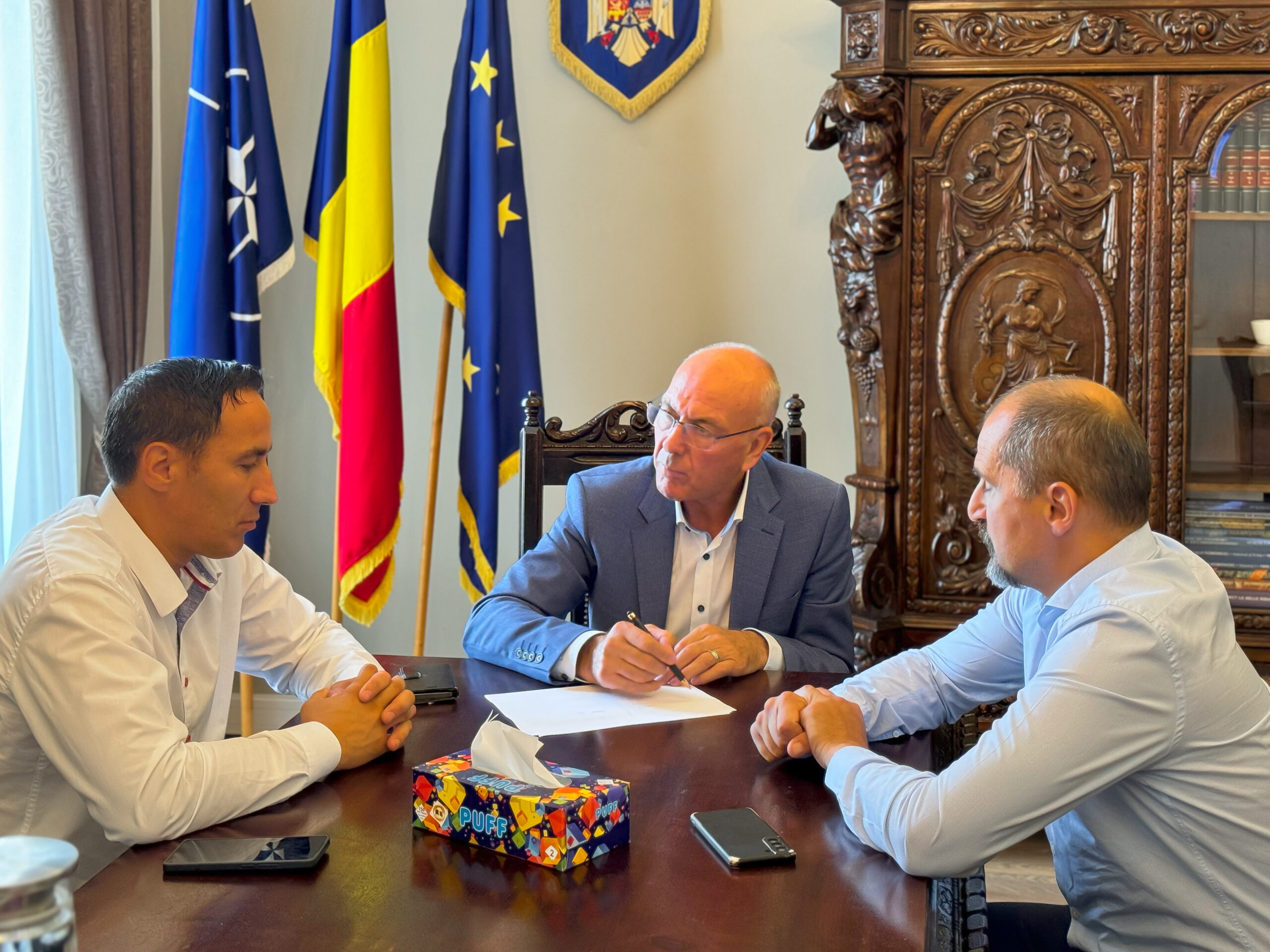 Preşedintele Consiliului Judeţean Braşov, Constantin Todorică Şerban, vicepreşedintele CJ Szenner Zoltan şi administratorul public Daniel Gligoraş au analizat joi, 18 iulie, stadiul obiectivelor investiţionale implementate cu fonduri guvernamentale gestionate de Ministerul Dezvoltării, Lucrărilor Publice şi Administraţiei.